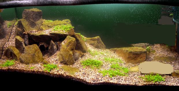 .... ..... βαρέθηκα να το γράψω όλο.Η ονομασία του φυτού είναι Hemianthus callitrichoides ''Cuba''. Αν σε ενδιαφέρε ιδιάβασε εδώ μια κουβέντα που είχε γίνει http://www.greekaquarist.com/vb/showthread.php?t=9604 Γειά σου Tricky. Έχεις δίκιο αλλά δεν θα μείνει έτσι. το σχέδιο λέει, να μεγαλώσει το φυτό και να καλύψει αρκετά την επιφάνεια των πετρών. Μάλιστα την προηγούμενη φορά που είχα αυτό το φυτό είχε ανέβει σε ένα ξύλο χωρίς κανένα πρόβλημα και έτσι μου μπήκαν ιδέες. Τώρα για το ύψος , είπαμε, 'ο ενθουσιασμός' Ήθελα λοιπόν να κάνω ένα άνοιγμα, για μπαίνει φως στο κάτω μέρος που είναι τα 'βράχια'. Εκεί (μέσα) είναι πιο βαθύ από το μπροστινό επίπεδο. Δεν πάει πολύς χαμένος χώρος (όσο μπορούσα δηλαδή). Δες φωτό. Αλλά και πάλι είναι ψηλό, ε ...; Τα λίτρα δεν είναι πάνω από 40 τελικά. Γιάννη ξέρεις ότι την άποψη σου. . .την μετράω 2 φορές. Πες μου εσύ τα 'άσχημα' σημεία που θέλουν βελτίωση. Ευχαριστώ που ασχοληθήκατε