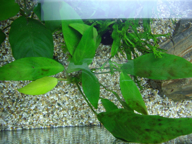 ![]() Οι ανούμπιες(ενυδρειο 75 λτ ) έχουν εδώ και μια εβδομάδα παρουσιάσει καφέ και κυρίως μαύρα στίγματα και κηλίδες και δείχνουν να μαραίνονται. Το ενυδρείο είναι 2 μηνών (3 μικρα veiltail)έχει 6 ανούμπιες μια μπάλλα άλγης και ένα microsorum pteropus δεμένο σε ριζα(και αυτό δειχνει να έχει πρόβλημα).Εχει υπόστρωμα και έχω προσθέσει 2 παστίλιες λίπασμα για τις ρίζες(sera) και πρόσφατα σταγόνες λίπασμα(sera florena). Σημερα διέκρινα και ίχνη πράσινης άλγης στο τζάμι.Οι μετρήσεις καλές πλην των ΝΟ3 =10-25.Μέτρησα και φωσφορικά κλπ. και δείχνουν ΟΚ.Κάποιος μου είπε να προσθέσω σίδηρο αλλά φοβάμαι το φόρτωμα με λίπασμα. Το νερό το αλλάζω 20-30% ανα εβδομάδα.Τα ψαράκια δεν τα ταιζω πολύ(1 φορά την ημέρα) Η φωτο είναι απο την αρχη του φαινομένου. Τώρα χειροτέρεψαν τα πράγματα. Ζητώ συμβουλές και ιδέες.Ευχαριστώ. |
