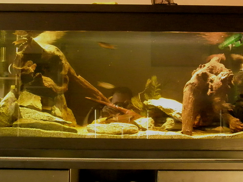 Πολύ καλή προσπάθεια από άποψη aquascape από ψάρια δεν καταλαβαίνω τι έχεις μέσα. Θα το προτιμούσα χωρίς πέτρες, το κάνουν λίγο χοντροκομένο κατα την άποψη μου και δεν φαίνεται καθόλου φυσικό το τοπίο ειδικά με την σπηλιά που έχεις φτάξει! Η κιτρινίλα είναι πολύ όμορφη, αρκεί να είναι από ξύλα !