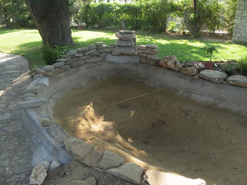 νιτρικά 30 νιτρώδη 0 γενική σκληρότητα περίπου 7 ανθρακική 6-8 ph 7,5-8 τα ψάρια, 4 κόι και 4 χρυσόψαρα πάνε μια χαρά τα νούφαρα έβγαλαν μπουμπούκι και έιναι έτοιμα να ανθίσουν Ωρες ηλιοφάνειας λίμνης 13:30 έως 18:00 περιστασιακά εμφανίζονται λιβελούλες, όλο και πιό συχνά εμφανίστηκαν και νεροβάτες αλλά δε τους ξανάδαμε, μάλλον τους φάγανε τα ψάρια η αντλία είναι της messner eco-x 4500 φίλτρο της tetra pressure pfx uv-5000 (με uv 9 watt) ενώ υπάρχει και μία εξωτερική αντλία μικρή, η οποία είναι συνδεδεμένημε ένα floating skimmer , και ενα οικιακό φίλτρο για το μαζεμα των πευκοβελώνων και της επιφανειακης σκόνης που δουλευει 2-3 ωρες το μεσημερι όλη η κατασκευη έγινε αποκλειστικά με πολυ κοπο, και μεράκι πιστεύω από εμένα, τη γυναίκα μου Έμυ και το γιό μας Παναγιώτη 5 χρονών παρακάτω μία συνοπτική παρουσίαση με φοτο από τη αρχή της κατασκευής μεχρι το τέλος, ενώ σκοπός μας είναι να υπαρξει και αναλυτική παρουσίαση της κατασκευης με λεπτομέρειες, ελπίζω καποια στιγμή...όταν βρεθεί χρόνος |
