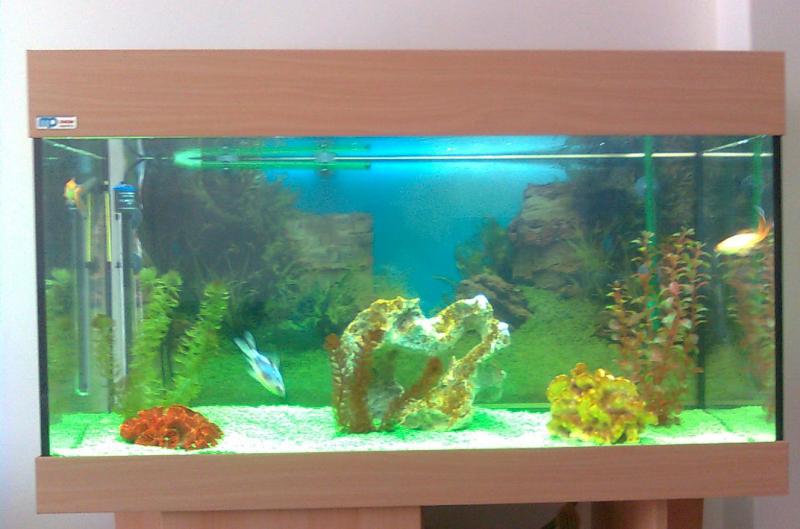 Το ενυδρείο είναι 180λίτρα. Μία λάμπα φθορίου και φίλτρο εξωτερικό heim.