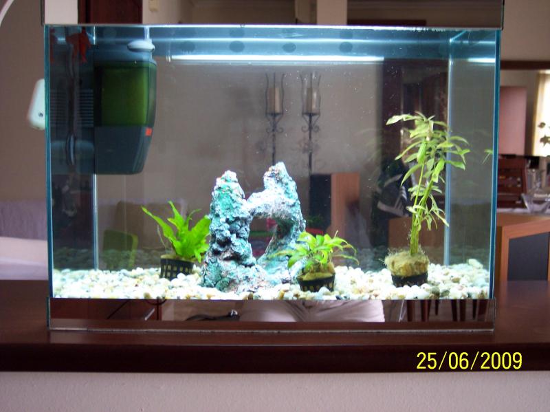 Καλώς σας βρήκα όλους!Αυτό το είναι το πρώτο μου ενυδρείο, για έναν συμπαθέστατο μονομάχο-μπομπονιέρα, δώρο απο μια βάπτιση στην οποία βρέθηκα.