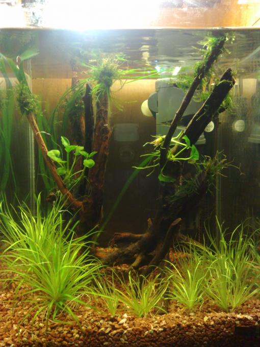 Κυβος dennerle 30 λιτρων με πολυ καλη τιμουλα βγηκαν οι κουτες και ενα φιλτρακι παλιο που ειχα καθως και ενας θερμοστατης! Απο φωτισμο αγορασα δυο Τ4 των 12 watt η καθεμια με μια επιφυλαξη οτι ειναι πολλα watt και χωρις τη παρουσια CO2 ισως οδηγησει σε αλγες! Θα το παρακολουθησω και θα επεμβω! Ισως βαλω ενα DIY CO2 θα δουμε!! Σιποραξ ετοιμο απο το δισκοενυδρειο... Η καταπληκτικη blyxa απο το 50 λιτρο καθως και moss και ανουβιες ... Ξυλαρακια που ειδα σε ενα πετσοπ και μου θυμησαν δεντρα και ξεκινησε το γεμισμα!!!! Φυσικα δεν εχει τελειωσει ακομα! Ο ενας "κορμος" ολο βρισκεται στην επιφανεια και εχω θαψει τις "ριζες του" προσωρινα! Δεκτες προτασεις - αποψεις ωστε να γινει ακομα καλυτερο!! Θα φιλοξενησει ενα αστερι μονομαχο!! Με γαριδουλες που σε ενα πειραμα που εκανα με cherry δε τις πειραζει προς το παρων!! Οπως παντα ενα μεγαλο ευχαριστω στον Αλεξανδρο που εκτος απο τα κλαδεματα του ειναι και πηγη εμπνευσης! Επισης ευχαριστω τον Πανο που αυτη η blyxa του εχει ταξιδεψει παντου και εχει γεμισει και ομορφυνει πολλα ενυδρεια! Προβλεπω οτι το μικρο θα μου αρεσει περισσοτερο απο ολα μου τα ενυδρεια ως τωρα!!