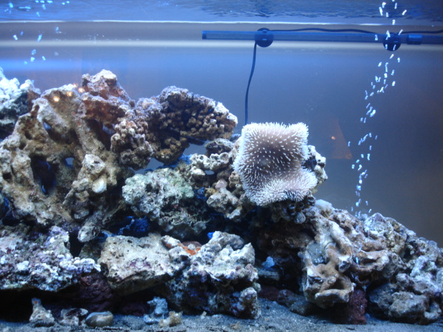 Η αμμο είναι μαυρος αραγονιτης και θα κοιταξω να μαθω ποιας εταιριας είναι γιατι τωρα δεν θυμαμαι .Oι φυσαλιδες (δηλαδη τα οξυγονα)κανουν κακο?Aμα είναι να τα σταματησω αμεσα.Tα κεραμυδακια που βλεπετε στα κενα του βραχου είναι μια ποσοτητα από λαβοπετρες που ειχα από το γλυκο και τις χρησιμοποιησα σαν βαση για να ακουμπησει ο ζωντανος βραχος.και που ξερεις μπορει στο μελλον να ζωντανεψουν(λεω εγω τωρα). |