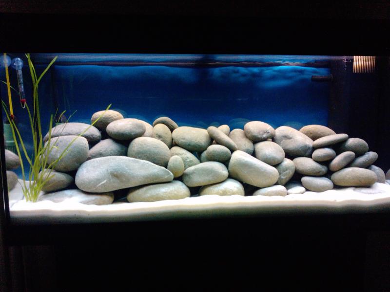 Πληροφορίες Διαστάσεις: 101 x 41 x 50 Όγκος: περιπου 160lt καθαρα Κατηγορία: malawi Φυτά: vallisneria Ψάρια / ¶λλα είδη: τιποτα ακομη Δευτερα περιμενω 1+3 Cynotilapia afra Διακοσμητικά υλικά: πετρες απο ποταμι,χαλαζιακη αμμος αγορασμενη Φόντο: μπλε χαρτονι Φωτισμός:High-Lite Light 2 x 45 W Διάρκεια φωτισμού: 8ωρες και 1moonlight Φιλτράρισμα:εσωτερικο 600t\h σφουγγαρια κ 1lt siporax,2215 620lt\h 4lt full siporax Θερμοστάτης: juwel 200w Λίπανση: - Παροχή CO2: - Παράμετροι: pH:8 Γενική σκληρότητα (GH):10 Ανθρακική σκληρότητα (ΚΗ):8 Αμμωνία (ΝΗ3):0 Νιτρώδη (ΝΟ2):0 Νιτρικά (ΝΟ3):0-25 Αλλαγές νερού: - Θερμοκρασία:25 ¶λλες πληροφορίες:Θελω να ανεβασω λιγο τις παραμετρους και να προσθεσω μια vallisneria γιγαντεα στην δεξια μερια λεω.....Και να παρω ακομη ενα θερμομετρο γιατι το ενα λεει 25 και το αλλο 22,5(μεγαλη διαφορα) Φωτογραφία: Ειναι απο κινητο οταν μπουν με το καλο τα ψαρακια θα ανεβασω καλυτερες |