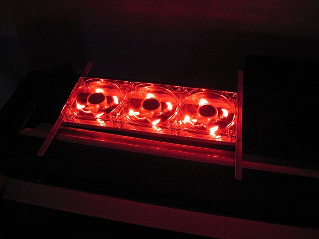 Έτσι κατά τα πρότυπα του μεσαίου έφτιαξα μια σκάλα και εκεί πάνω στερέωσα 3 ανεμιστηράκια των 12 πλέον cm. Το θέμα μας είναι άλλο! Όταν πήγα στο πολυμαγαζί με τους υπολογιστές ζήτησα "τα πιο φθηνά 12άρια που έχετε!". Τελικά μου δώσαν αυτά με 3€ το ένα. "Τζετ!", λέω.... Τώρα που τα συναρμολόγησα και λειτουργούν διαπιστώνω πως έχουν τα ρημαδιασμένα και..... κόκκινα λεντάκια!!!! Όταν λειτουργούν (γιατί τα έχω σε χρονοδιακόπτη) δημιουργούν...... "αισθησιακή ατμόσφαιρα" και εντός και εκτός του ενυδρείου.... Λέτε να έχει θετική επίπτωση στην... αναπαραγωγή των ψαριών; Πάντως εκτός ενυδρείου δεν έχει αποτέλεσμα αφού έφαγα την παντόφλα του αιώνα επειδή... μετέτρεψα το σαλόνι σε μπουρ....!!!!![]() ![]() ![]() (άμα κόψω τα λεντάκια, υπάρχει περίπτωση να χαλάσω κάτι στο κύκλωμα και να μη λειτουργούν; Αν και μου έχει δημιουργηθεί η εντύπωση πως δουλεύουν ανεξάρτητα...)