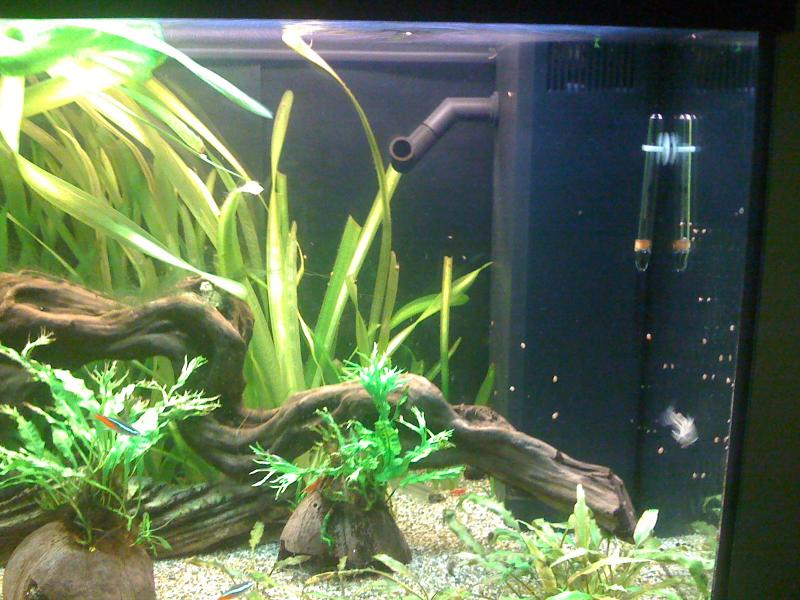 Διαστάσεις:101 x 50 x 41 εκ. (rio 180) Όγκος:180 litr Κατηγορία:κοινωνικο Φυτά:Vallisneria americana (gigantea),Cryptocoryne,Windelov Ψάρια / ¶λλα είδη:11 rasbora galaxy,4 corydoras julli,1 comon pleko,5 zebra nitrine snails,7 νεον τετρα,4 διαφανειες,20 red cherry. Διακοσμητικά υλικά:ξυλα,καρυδες,χαλικι aquatica (1mm) (χαλίκι, ξύλα κ.λ.π.) Φόντο:μαυρο χαρτονι Φωτισμός:2*45 watt Διάρκεια φωτισμού: 7:30 ωρες Φιλτράρισμα:εσωτερικο juwel(1 litr biomech),εξωτερικο eheim prof 3 2073 Θερμοστάτης:200 w juwel Λίπανση:1 φορα τις 2 εβδομαδες floyrish Παροχή CO2:- Παράμετροι: pH:7,2 Γενική σκληρότητα (GH):11 Ανθρακική σκληρότητα (ΚΗ):9 Αμμωνία (ΝΗ3):0 Νιτρώδη (ΝΟ2):0 Νιτρικά (ΝΟ3):<5 Αλλαγές νερού:30% καθε εβδομαδα Θερμοκρασία:25,5 ¶λλες πληροφορίες:τρεχει 1,5 χρονο. ολα τα τεστ γινονται με τα υγρα τεστ τις api. ταισμα 1 φορα την ημερα με 3 διαφορετικες τροφες. Φωτογραφία:οι φωτογραφιες ειναι απο κινητο |