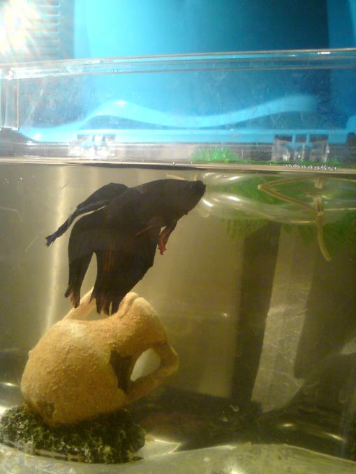 Έτσι λοιπόν αφού είχα τους 3 μονομάχους (2 θυληκές, 1 αρσενικό) και ένα μικρό πλαστικό ενυδρειάκι σκεύτηκα να τα βάλω για αναπαραγωγή.