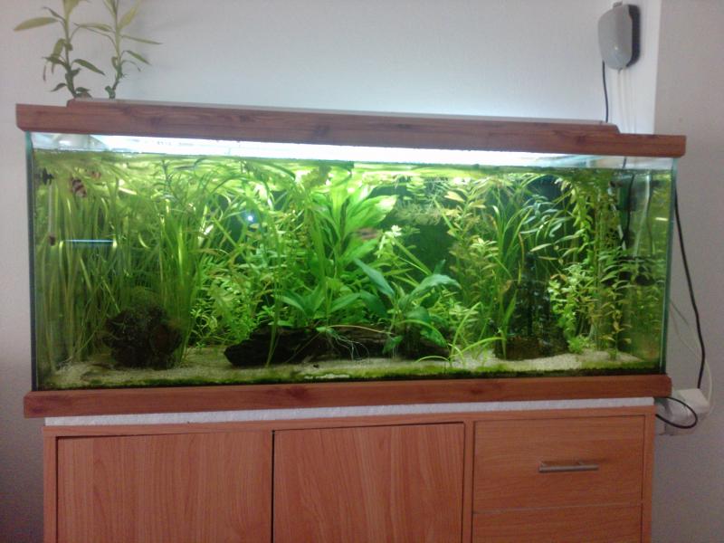 Πληροφορίες Διαστάσεις: 100 μηκος χ 35 πλατος χ 45 υψος Όγκος: 140 λιτρα καθαρα Κατηγορια κοινωνικο Φυτά: Ceratophyllum demersum, Αnubias, Hygrophila polysperma, Bacopa monnieri, Vallisneria 2 δρακενες και καποια αλλα που δεν θυμαμαι ονομασιες Ψάρια / ¶λλα είδη: 11 τιγρακια, 7 ζεβρακια 3 κορυ αενεους και 6 στερμπα'ι' Διακοσμητικά υλικά: ένα πυθαρι ,ένα ναυαγιο (χαλίκι, ξύλα κ.λ.π.) ποταμισια αμμος (χοντρη) ένα ξυλο Φόντο: μαυρο χαρτονι Φωτισμός: 2 τ5 21 βατ, 90εκ Διάρκεια φωτισμού: 5 ωρες το καλοκαιρι 8 το χειμωνα Φιλτράρισμα: εξωτερικο 400λιτρα/ ωρα Θερμοστάτης: 200 βατ Λίπανση: plantaMin, καλιο και ταμπλετες crypto της τετρα Παροχή CO2: d.i.y 4 λιτρο μπετονακι Παράμετροι: pH: < 7,5 Γενική σκληρότητα (GH): 8-9 με απιονισμενο νερο Ανθρακική σκληρότητα (ΚΗ): 7-8 Αμμωνία (ΝΗ3): 0 Νιτρώδη (ΝΟ2): 0 Νιτρικά (ΝΟ3): 5 -10 Αλλαγές νερού: 30 τις εκατο καθε 10 μερες Θερμοκρασία: 27 το καλοκαιρι 25-26 το χειμωνα 1η παρουσιαση http://www.aquatek.gr/vb/showthread.php?t=33824 2η παρουσιαση http://www.aquatek.gr/vb/showthread.php?t=43820 Υ.Γ 1 τα φυτα ειναι μια ευγενικη δωρεα του giannisqq Υ.Γ 2 οι φωτο ειναι απο κινητο