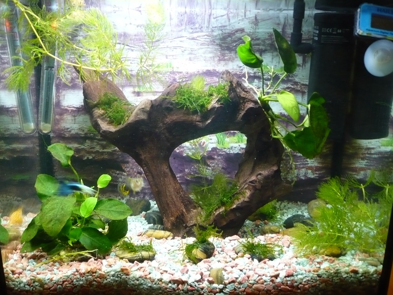 ομορφο το ενυδρειο σου!αν εβαζες και ενα μαυρο φοντο νομιζω θα εδειχνε πολυ καλυτερο.καλη συνεχεια.