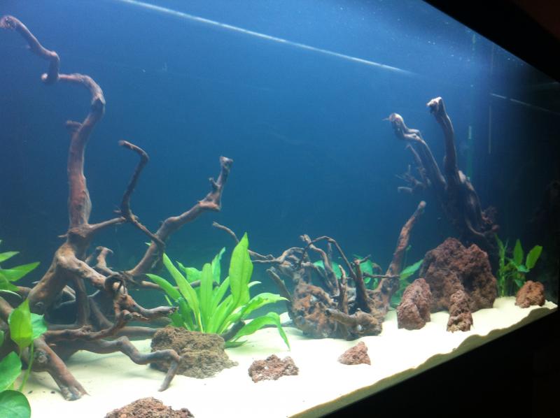 Οι ανουμπιες οντος μπορει να εχουν ενα θεμα στο βυθο ετσι οπως της εβαλες,,πρεπει η ριζες τους να ειναι λιγο εξω απο το υποστρωμα,[αμμο] Για να αποφυγης της αλγες που θες δεν θες θα σου βγουνε ,,θα ελεγα για αρχη να βαλεις φυτα ταχεις αναπτυξεις,δεν εχεις τιποτα απο τετοια φυτα . Εχει βεβαια ενα κοστος να γεμιση τοσο μεγαλο ενυδρειο ,αλλα σιγα σιγα με τα κλαδεματα που θα παρεις θα γεμιση. Διαβασε τα υπομνηματα για την ψαροσυνθεση πρωτα και μετα παρε τα ψαρια που θα ταιριαζουν μεταξυ τους.