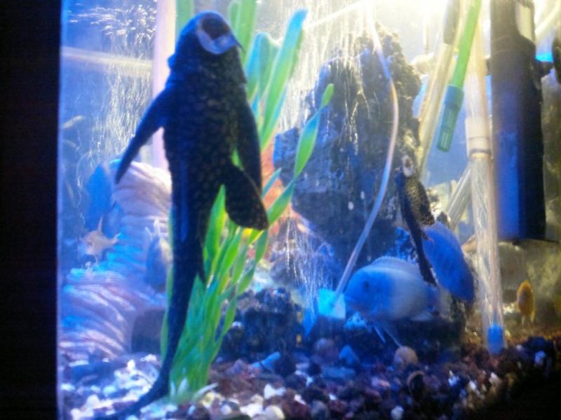Διαστάσεις:1x0.5x0.52 Όγκος:260 ltr Κατηγορία:malawi και οχι μονο! Φυτά:Vallisneria Ψάρια / Άλλα είδη:1 VENUSTUS 2 AFRA ACEI YELLOW TAIL 1 PSEUDOTROPHEUS SOCOLOFI 2 SILVER SHARK 2 LABIDOCHROMIS 1 SCIAENOCHROMIS FRYERI 2 BLUE ZEBRA 2 HYPOSTOMUS PLECOSTOMUS Διακοσμητικά υλικά:1 ζωντανό κοράλλι, βράχους, χαλίκι λάβας, κιουπι, φυτά (χαλίκι, ξύλα κ.λ.π.) Φόντο: φυτά Φωτισμός:2 λεντοταινίες μπλε x 1m και μια λάμπα φθορισμού άσπρη (Ισχύεις δε θυμάμαι) Διάρκεια φωτισμού:19:00-00:00 (5 ωρες) Φιλτράρισμα:Για το φιλτράρισμα του νερού έχει τοποθετηθεί πλακάκι στο υπόστρωμα, και χαλίκι λάβας από πάνω. Υπάρχει ένα εσωτερικό φίλτρο, και τρεις κυκλοφορητές βυθού που στέλνουν τα ‘’απόβλητα’’ σε ένα εξωτερικό φίλτρο 440 ltr της EHEIM σειράς 2213. Θερμοστάτης:1 EHEIM 300w Λίπανση:οχι Παροχή CO2:οχι Παράμετροι: pH:7.5-8.0 Γενική σκληρότητα (GH): Ανθρακική σκληρότητα (ΚΗ): Αμμωνία (ΝΗ3): Νιτρώδη (ΝΟ2): Νιτρικά (ΝΟ3): Αλλαγές νερού:40-50 % καθε τρεις βδομαδες Θερμοκρασία:25 Άλλες πληροφορίες:η ψαροσυνθεση μου δεν είναι πολύ καλή και το κακό είναι πως δεν αλλάζει εύκολα αυτό το πρόβλημα. Παραδόξως όμως , τα ψαράκια έχουν ταιριάξει απόλυτα μεταξύ τους και το ενυδρείο έχει κάποια αρμονία. Όσο για τις αναλογίες ,δυστυχώς , όταν αγόρασα τα ψάρια, ήμουν μόνος μου και χωρίς πολλές γνώσεις πάνω στο συγκεκριμένο είδος. Το κατάστημα που τα αγόρασα κοίταξε απλά να πουλήσει και δεν μου έδωσε κάποιες πρώτες συμβουλές , ίσως να μην ήξερε βέβαια. Φωτογραφία: |