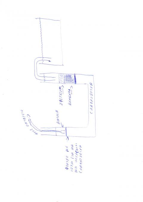Αγόρασα σωλήνα pvc 125 σαν αυτούς που χρησιμοποιούνται για τους απορροφητήρες. Ήθελα να αγοράσω μεγαλύτερης διαμέτρου αλλά δε βρήκα. Τέλος πάντων κι αυτό έκανε μία χαρά τη δουλειά του. Επίσης δεν ήθελα να μπλέξω με φλάντζες, στεγανοποιήσεις, κινδύνους διαρροών και διάφορα τέτοια. Ήθελα να το κάνω όσο το δυνατό πιο απλό και σίγουρο. Με το σωλήνα αυτό και δύο γωνίες που αγόρασα έφτιαξα ένα π που τοποθέτησα ανάποδα πίσω από το ενυδρείο. Στο ένα πόδι του π έχω βάλει ένα σιφόνι με σωλήνα φ 32 για να γεμίζει νερό από το ενυδρείο και αμέσως μετά σφουγγάρι και έπειτα ενυδρειακο βαμβάκι. Όλο το υπόλοιπο κομμάτι και μέχρι το επόμενο πόδι σε ύψος περίπου 70 εκατοστών είναι γεμάτο με ελαφρόπετρα. Μία αντλία με αναγραφόμενη ροή 1300 λίτρα την ώρα αναλαμβάνει μετά να ρίχνει το νερό από το φίλτρο μέσα στο ενυδρείο. Για να θυμίσω σε όσους έχουν ξεχάσει τα σχολικά χρόνια, η ογκομέτρηση του κυλίνδρου γίνεται με τον τύπο π*r^2*l. Πολλαπλασιάζουμε δηλαδή το μήκος σε εκατοστά με το τετράγωνο της ακτίνας και όλο αυτό με το π που είναι το 3,14. Στο δικό μου φίλτρο δηλαδή που το ύψος της ελαφρόπετρας είναι στα 70 εκατοστά έχω. 70+70+120=260 εκατοστά μήκος κυλίνδρου που είναι γεμάτο με ελαφρόπετρα x Το τετράγωνο της ακτίνας δηλαδή 62,25*62,25=3906.25 X τη σταθερά 3,14= 31,89 καθαρά λίτρα βιολογικού υλικού.