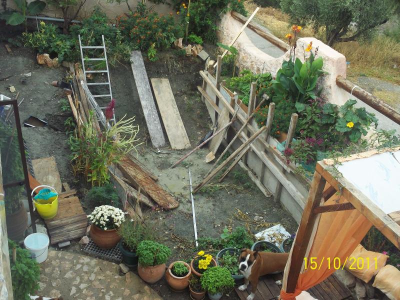 Στο πλαι αριστερα τερμα γωνια ο λιγος χωρος που μου μενει να σκαψω για φιλτρα ψευτοκαλουπωθηκε για να μην πεφτουν τα χωματα απο τη βροχη |