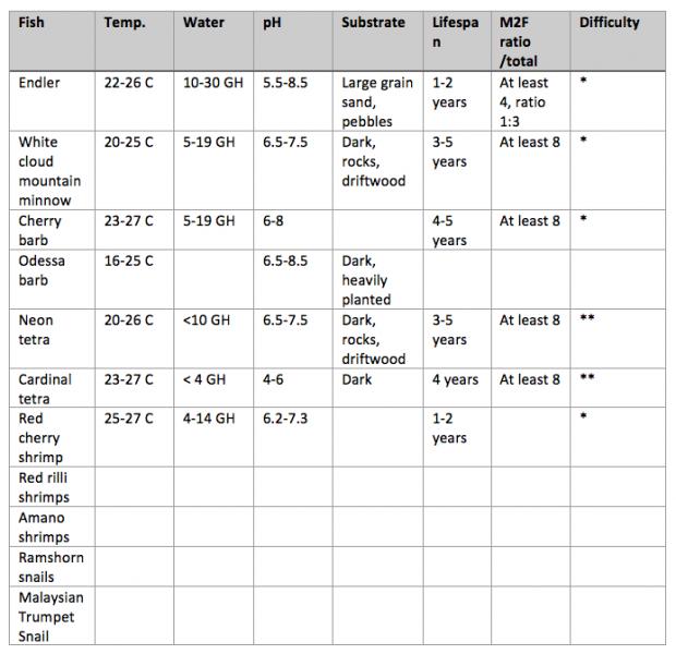 Ετοιμάζομαι να φτιάξω το δεύτερο μου ενυδρείο μετά από μια διακοπή 15 χρόνων από το χόμπυ. Η προηγούμενη προσπάθεια δεν πήγε πολύ καλά, ελπίζω αυτή να πάει καλύτερα. Τώρα είμαι στη φάση που αγοράζω τα βασικά, άλλα μεταχειρισμένα και άλλα καινούργια. Το μόνο που προς το παρόν είναι βέβαιο είναι το ενυδρείο που θα είναι 60 λίτρα (Juwel 60 x 30). Όσον αφορά τα ψάρια που θα μπουν έχω καταλήξει ότι μου αρέσουν τα εξής:Endlers, white cloud mountain minnows, cherry barbs, odessa barbs, neon tetra, cardinal tetra. Μου αρέσουν και οι γαρίδες, red cherry, red rilli και amano, όπως και τα σαλιγκάρια (ramshorn, malaysian trumpet). Κάνω μία έρευνα σχετικά με τις κατάλληλες συνθήκες για αυτά τα είδη. Δυσκολεύομαι να διαλέξω... Υπάρχουν συγκεκριμένες προτάσεις για το ποιά από αυτά και πόσα ακριβώς να βάλω? Είναι παρόμοιας δυσκολίας? Έχουν κάποια ασυμβατότητα τα παραπάνω είδη μεταξύ τους αν είναι για να μην τα βάλω μαζί? |