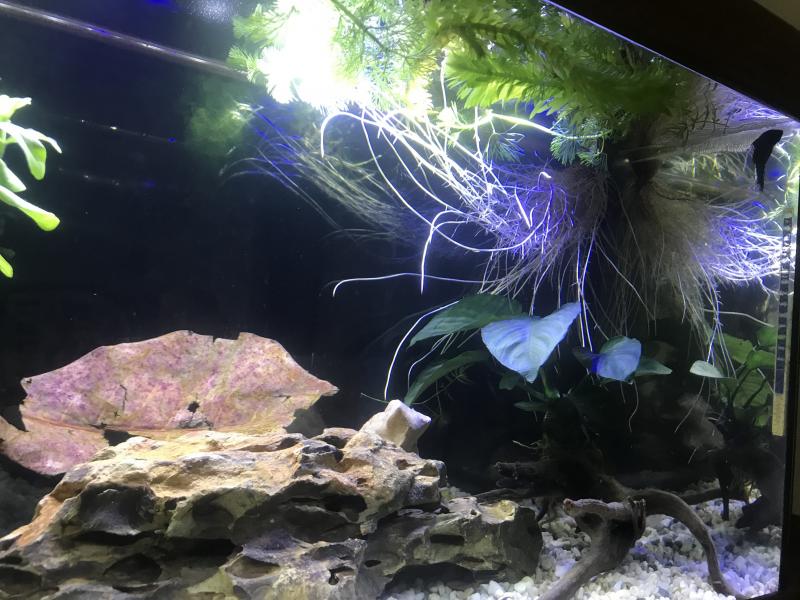 Απο χαλικι εβαλα αυτο γιατι μου ειχε μεινει απο παλαιοτερο project αλλα περιμενω catappa leaves απο ebay για να καλυψω την ασπριλα στο πατο. |