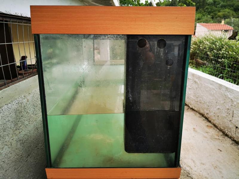 Μάλλον θα ξεκινήσω επιχείρηση 450 λίτρα. Απλά θέλει καθάρισμα γιατί ήταν σε αποθήκη αλλά χωρίς υγρασιες κλπ... Το γεμίσαμε νερό μέχρι εκεί που βλέπετε γιατί δεν ήταν επίπεδο το έδαφος και θα έπεφτε το περισσότερο βάρος στο αριστερό τζάμι και το φοβηθηκαμε να το γεμισουμε περισσοτερο... Παρόλα αυτά θα περιμένουνε μέχρι μια δυο μερες να δούμε για τυχόν διαρροές και αν είναι όλα καλά συνεχίζουμε.