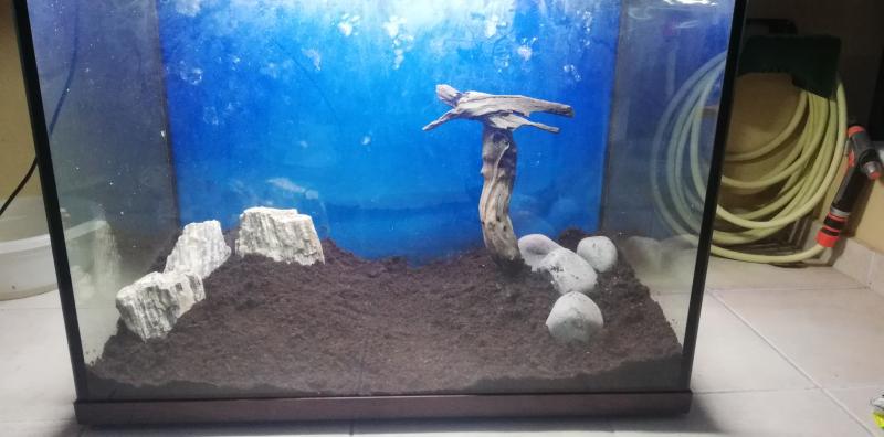 Αμμος γκρι,δεν ξερω αν θα μου φτασει. Χαλικακι μαυρο δεν βρεισκω στην Κερκυρα,μονο ασπρο,και αν δεν βρω θα το αφησω με την αμμο πανω απο το φυτοχωμα. Σκεφτομαι να το φυτεψω ολο Eleocharis Parvula και στο ξυλο να μπει απο πανω Christmass moss να γινει σας δεντρο.Πισω απο τις πετρες αριστερα ισως βαλω κανενα εχινοδορο κοκκινο ή καμια κριπτοκορυνα ή pteropous,θα δω. Στο Dty start ποσο μα βρεξω το υποστρωμμα?να τομουσκεψω τελειως ή απλα να εχει πολυ υγρασια? |