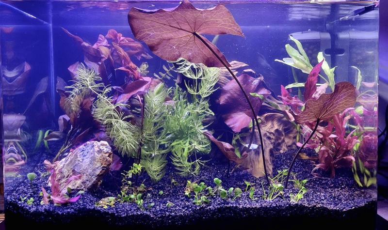 Τώρα σχετικά με την διάχυση, στο σημείο που έχω τοποθετήσει το σωληνάκι σπάνε αρκετά οι φούσκες του αερίου και σίγουρα μεταφέρονται σε όλο το ενυδρείο (είναι οφθαλμοφανές). Επίσης όλα τα φύλλα των φυτών είναι γεμάτα με φουσκάλες. Και πολύ βασικό όλα τα φυτά μεγαλώνουν με πολύ γρήγορο θεωρώ ρυθμό. Ενδεικτικά έχω κλαδέψει ήδη μία φορά φυτά που βγήκαν έξω από το νερό (πήραν ύψος 3-5cm σε ούτε 10 μέρες). Η red tiger lotus έχει βγάλει 3-4 νέα φύλλα. Δεν έχω μεγάλη εμπειρία με ρυθμούς ανάπτυξης, αλλά προς το παρόν είμαι απόλυτα ικανοποιημένος!