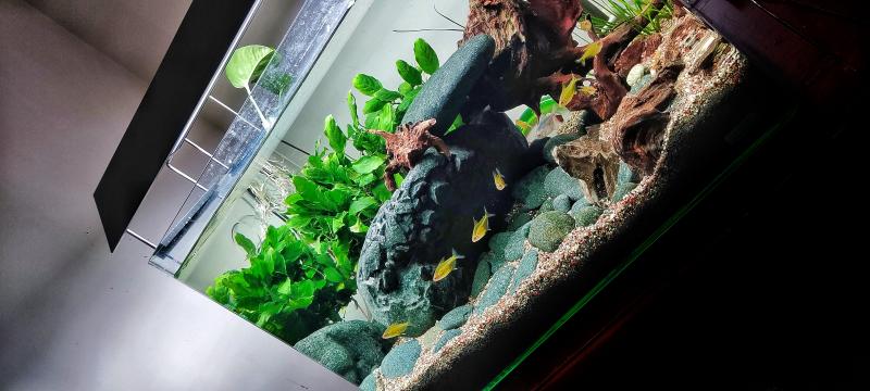 έχω αρκετό καιρό να γράψω, από ότι είδα κοντά στον 1,5 χρόνο. Το aquascape που είχα φτιάξει τελευταία φορά που πόσταρα το άλλαξα και τώρα έχω φτιάξει ένα με λιγότερα φυτά, καθώς με κούραζε πολύ η περιποίηση που θέλανε λόγο του ότι στα 70lt (μικτά) κατάκλυζαν το ενυδρείο για πλάκα, βέβαια από την άλλη με βόλευε πολύ γιατί δεν έμενε ίχνος νιτρικών, όμως αυτό είχε σαν αποτέλεσμα να μην περιποιούμαι την πρασινάδα, με αποτέλεσμα η εμφάνιση του ενυδρείου να μην μου αρέσει. Οπότε με την καινούργια χρονιά βγήκαν όλα από την γυάλα και τοποθετήθηκε καινούργιο hardscape που περιλαμβάνει πέτρες που είχα μαζέψει το καλοκαίρι καθώς και λίγα ξύλα από αυτά που είχα το προηγούμενο στήσιμο. Επιπλέον αν και αγόρασα καινούργιο υπόστρωμα, τελικά καθάρισα το προηγούμενο και πρόσθεσα από πάνω ένα ποταμίσιο χαλικάκι που πήρα από petshop (~1 cm) και όχι σε όλη την επιφάνεια του βυθού. Τώρα ενώ είχα ελέγξει τις πέτρες ότι δεν ανεβάζουν την GH (με aquaforte), διαπίστωσα ότι η gh στο νερό του ενυδρείο αυξάνετε, δηλαδή ενώ στην βρύση έχω GH=9 και στο ενυδρείο μετά από προετοιμασία του νερού με μείγμα από Α.Ο. και νερό βρύσης η GH είναι μεταξύ 5 με 6, μετά από μία μέρα ανεβαίνει στο περίπου κατά 1 βαθμό, με αποτέλεσμα να φτάνει στο ~7. Δεν το έχω αφήσει παραπάνω από 1-2 μέρες για να δω που θα τερματίσει αλλά πιστεύω ότι θα έχω μία αύξηση κοντά στους 2 βαθμούς. Αυτή τη στιγμή έλεγξα με ποιο σωστό τρόπο κάποιες πέτρες που δεν χρησιμοποίησα, δηλαδή τις έβαλα μέσα σε νερό από Α/Ο και τις άφησα 1 μέρα να δω αν θα υπάρχει έστω κάποια μικρή διαφορά, αναλογικά η πέτρα είναι σε μεγαλύτερο ποσοστό από ότι στο ενυδρείο και δεν είδα διαφορά. Το ίδιο πράγμα έκανα και με το ποταμίσιο χαλίκι που πίστευα ότι είναι η αιτία και όντως είχα μία αύξηση 4 μονάδες σε 3 μέρες, αναλογικά το χαλίκι σε σχέση με το νερό είναι σε μεγαλύτερη ποσότητα από ότι στο ενυδρείο. Το ερώτημα μου είναι, αν για να κρατάω την GH στο επίπεδο που θέλω, με το να αφαιρώ λίγο νερό και να προσθέτω νερό από την Α/Ο σε καθημερινή βάση, πέρα από το να παραμένει καθαρό το νερό, αφού στο τέλος της εβδομάδας έχω αλλάξει σχεδόν το 100% του νερού και τα No3 είναι 5ppm/l , θα έχω έλλειψη σε άλλα στοιχεία που χρειάζονται τα ψάρια? Τουλάχιστον σκέφτομαι προσωρινά να το κρατήσω έτσι, γιατί γλυτώνω την προετοιμασία του νερού που έκανα στην εβδομαδιαία αλλαγή, καθώς στην καθημερινή αντικατάσταση δεν ρυθμίζω τίποτα και ρίχνω το νερό της Α/Ο απευθείας, αφού δεν χρειάζεται ούτε να το ζεστάνω μιας και η αλλαγή στην θερμοκρασία είναι σχετικά μικρή (~1c). Τι γνώμη έχετε, από την εμπειρία σας τι λέτε για όλο αυτό? Ευχαριστώ! |