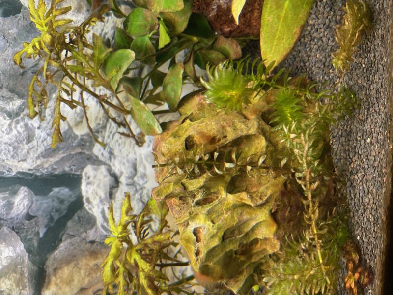 Σε ανούμπια που είχε πάνω της μαύρη τριχοειδή άλγη την εβγαλα απο το ενυδρείο τη μούσκεψα με ξύδι μετα απο 1 λεπτο την ξέπλυνα με νερό και την τοποθέτησα ξανά στο ενυδρείο. Μετά απο λίγες ώρες η άλγη έγινε κόκκινη την επόμενη μέρα λευκή, και την επόμενη εξαφανίστηκε. Εχει περάσει ένας μήνας και η ανούμπια χαίρει άκρας υγείας. |