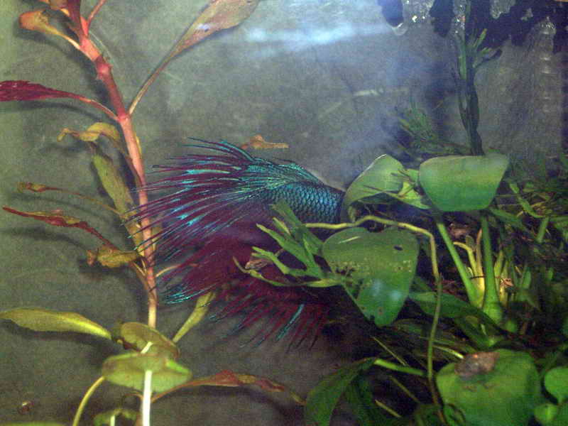 Να σας συστήσω το Μανώλη λοιπόν! Ο Μανώλης είναι ένας συμπαθέστατος betta splenden. Για τον ακριβή τύπο παρακαλώ τα φώτα σας, μια κ εγώ είμαι άσχετος αλλά κ ο Μανώλης πεισματικά δεν απαντά στις ερωτήσεις μου Ο Μανώλης ποζάρει στις φωτό 1 και 2 ενώ στην 3 ντράπηκε και κρύφτηκε! Στο σπίτι του Μανώλη υπάρχει κ ένας συγκάτηκος. Το σπίτι τους είναι μία γυάλα τεσσάρων νομίζω λίτρων με hang on φιλτράκι. φωτο 6 κ 7. Έχει μέσα μία καρύδα με anubia nana κ Microsorum Pteropus windelov. Επίσης υπάρχουν και Hydrocotyle verticillata κ Alternanthera reineckii. Αυτά! Ο Μανώλης σας στέλνει χαιρετίσματα!!