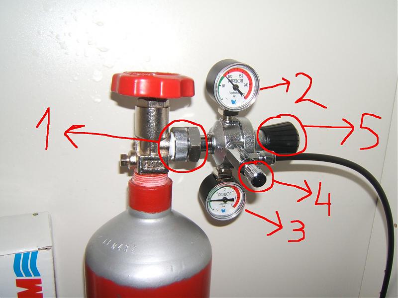 H μπουκαλα κανονικα εχει λαβη που την πιεζεις και απελευθερωνεται το διοξειδιο(κλασικος πυροσβεστηρας) ο τσερτσης το βγαζει αυτο και βαζει βανα(στροφιγγα) που πανω σε αυτην βαζεις τον μειωτη (μανομετρα).