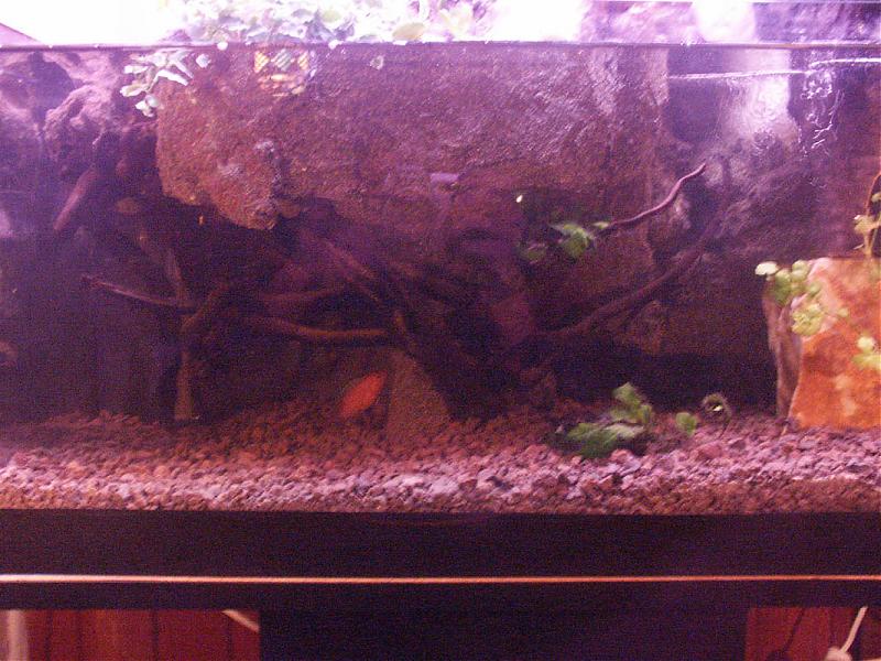 Ήδη έχω αρχίσει να ψήνομαι για μεγαλύτερο αλλά θα χρειαστώ και μεγαλύτερο σπίτι για αυτό που σκέφτομαι, οπότε το αφήνω προς το παρόν Τελικά έβαλα ένα ζευγάρι hemichromis lifalili με την προοπτική να μεταφερθούν σε μεγαλύτερο φυτεμένο που σκοπεύω να φτιάξω αργότερα. Για άλλα ψάρια τώρα τι λέτε? Φυσικά δεν έχω και πολλές δυνατότητες λόγω έλλειψης χώρου.. Βάζω και μερικές φωτό όπου φαίνεται καλύτερα ο βυθός, ο οποίος είναι σκοτεινός λόγω της κατασκευής που έχω φτιάξει. Για φυτά βυθού λοιπόν θα χρειαστώ κάποια με λίγες έως ελάχιστες απαιτήσεις σε φως, οι ανούμπιες νομίζω κάνουν αλλά δεν ξέρω και πολλά άλλα Περιμένω τις προτάσεις σας, θα σας κρατάω ενήμερους για την πορεία της κατασκευής! |