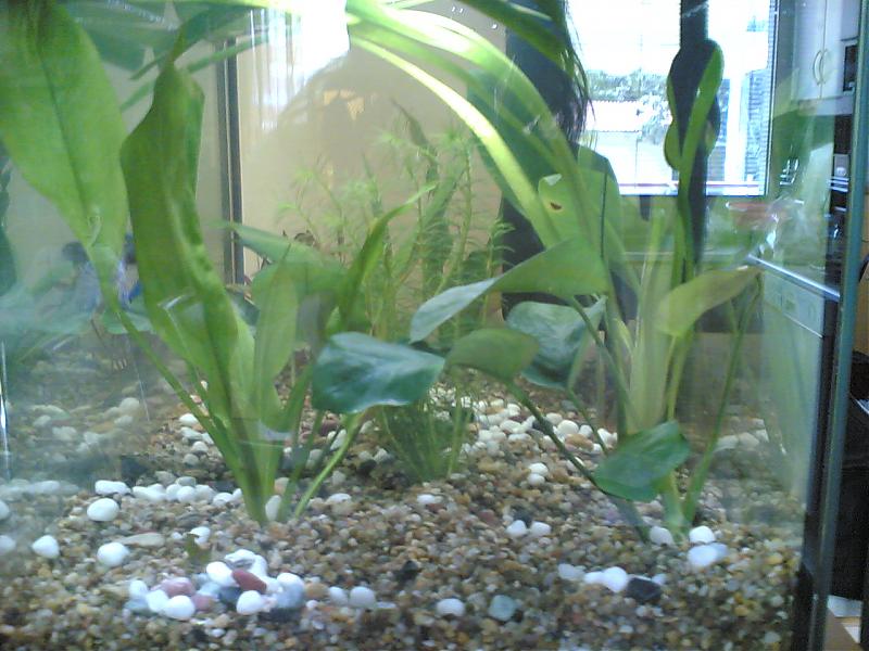 1. Θα αγοράσω το Σαββατο φυτά και υπόστρομα-χωμα για το μικρό ενυδρίο. Τι φυτά να πάρω? Αυτά που έχω στο 60αρι δεν ξέρω πως τα λένε. Σας τα βάζω σε εικόνα και πειτε μου για να μάθω κι εγώ πως λέγονται. 2. Θα μεταφέρω νερό από το 6 μερων ενυδρείο (το 60αρι) και θα συμπληρώσω με νερό της βρύσης. 3. Μόλις φτάσει στην επιθυμητή θερμοκρασία 26 βαθμούς θα βάλω μέσα τον μονομάχο. Στο πρώτο ενυδρίο αφου θα βγάλω τον μονομάχο να πάρω και να ρίξω αμμωνία για να συνεχίσει το στρώσιμο χωρίς το ψάρι? Το Σάββατο επίσης θα πάρω και τέστ για να μετρήσω το 60αρι να δω που βρίσκομαι. Πάντως δεν θα βιαστώ να πάρω ψαρια μεχρι να είμαι σίγουρι ότι είναι εντάξυ. Αυτά Πείτε μου την γνώμη σας Το φυτά του ενυδρείου μου |