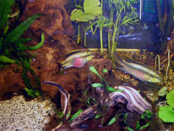 Πριν μια εβδομαδα σε βολτα στα μαγαζια εψαχνα να αγορασω κανενα φυτο οταν το ματι μου επεσε σε μια δεξαμενη με καμια 30αρια κριμπενσις.Αναμεσα τους ηταν ενα ζευγαρι που υπερασπιζοταν σθεναρα μια γωνια του ενυδρειου με την θηλυκια να ειναι σε..προχωρημενη εγκυμοσυνη. Δεν αντεξα και τα αγορασα μιας και τα συγκεκριμενα ψαρια μου αρεσουν πολυ. Την επομενη μερα αγορασα μια καρυδα,την εφαγα