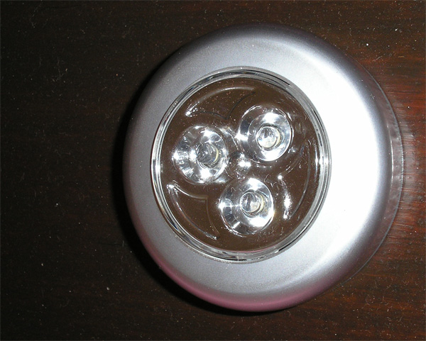 Εχει 3 λευκα leds τα οποια βγαζουν ενα λευκο-γαλαζωπο φως. Μαρκα δεν λεει, δεν ξερω.