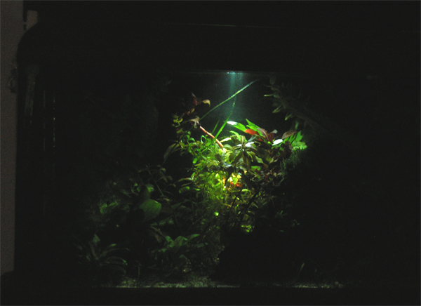 Τωρα που νυχτωσε κι εσβησα τα φωτα δειχνει super ! Οι φωτογραφιες το αδικουν μιας και δεν βρηκα τις καταλληλες ρυθμισεις για νυχτερινη ληψη. Βασικα εγω το εβαλα γιατι το βραδυ τα corydoras εκαναν επιδρομη στην γεννα των Kribensis. Το φωτιστικο το πηρα απο τον Βασιλοπουλο 2,50 Ε και αφου το εφτιαξα εγω σε 5 λεπτα μπορει να το κανει οποιοσδηποτε... το συστηνω ανεπιφυλακτα !