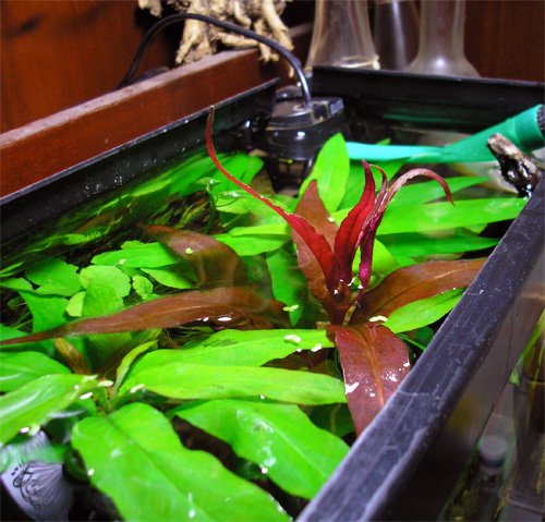 .Ξερει κανεις πως γινεται εξω απο την επιφανεια και αν ανθιζει; Παντως δεν υπαρχει περιθωριο να ψηλωσει αλλο μιας και ακουμπαει ηδη στο καπακι.Το ενυδρειο ειναι 12λιτ και χρησιμοποιω την σειρα της seachem απο λιπασματα σε πολυ μικρες καθημερινες δοσεις. Επισης καθημερινα excel γιατι το CO2 DIY αποδειχτηκε ενα αινιγμα που δεν μπορεσα να λυσω