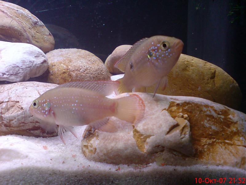 τα θηληκά είναι πιο μικρόσωμα...και πιο ροζοκόκκινα απο τα αρσενικά. τα αρσενικά έχουν λίγο πιο καμπυλωτό το κρανίο τους. ζευγαρώνουν πάρα πολύ εύκολα και κοκκινίζουν έντονα αν αρχίσει το φλερτ...τα δικά μου έκαναν μικρά στον πρώτο μήνα. είχα 4-5 γέννες. οι γονείς δεν τρώνε τα μικρά και εναι στοργικοι και προστατευτικοί. αν θες γέννα καλύτερα μην βάλεις άλλο ψαρι γιατι δεν θα σου μεινει μικρό. οταν γενιουνται είναι πάρα πολυ μικρά, σαν ψείρες και εύκολα τρώγονται απο συγκατοίκους. έτσι έχασα τις πρώτες γέννες... την τελευταία γεννα την έσωσα με σουρωτήρη του τσαγιού...απο την αποχη βγαίνουν απο τις τρυπες (τοοοοοοσο μικρά είναι)...μετά σε γεννηστρα. η γεννήστρα θελει εξωτερικα καλσόν γιατι βγαίνουν απο τις τρύπες. ΑΝ ΟΜΩΣ ΔΕΝ ΒΑΛΕΙΣ ΑΛΛΟ ΨΑΡΙ ΔΕΝ ΚΑΝΕΙΣ ΔΙΑΧΩΡΙΣΜΟ ΜΙΚΡΩΝ ΑΠΟ ΓΟΝΕΙΣ επιβίωσαν και μεγάλωσαν καμια 25αρια. τώρα έχω ενα ενυδρείο με 18 περιπου Lifalili. χαρησα αρκετα. ένα ζευγαρι σε φίλο και στον πρωτο μηνα είχε μικρά!!!! είναι πολύ γλυκά και όμορφα ψάρια και κυρίως οταν βγάλεις ζευγάρι και πάρουν ένα ωραίο κακκινο χρώμα. το set up σου μου αρεσει...ομορφες πετρες...αν θες δώσε λίγο ύψος με κρυψώνες...τα δικά μου τους αρεσει να χώνονται σε σπηλιές. ταίζω στικς για κιχλιδες γενικά (μεσαίου μεγέθους) αλλα τρώνε σχεδόν τα πάντα... για να δεις πως μοιαζουν τα αρσενικά σου στελνω τον δικό μου...
