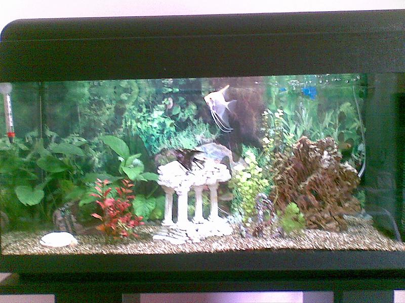 Είναι 96άρι του carefoure και οι κάτοικοι ειναι 2 σκαλάρια,2 ραμιρέζοι αν δεν κάνω λαθος,(αν κάνω λαθος διορθώστε με) και ένας pleco(Είχα πρόβλημα με άλγη και τα καθάρισε όλα).Έχω 4 ανούμπιες και 2 αλλα είδη που δεν θυμάμαι.Το ενυδρείο τρέχει εδώ και 7 μήνες χωρίς καμια απώλεια μετά από πολύ διάβασμα στο forum.Πριν έκανα οτι μου έλεγαν από τα pet shop με τραγικές συνέπειες.Σας ευχαριστώ όλους για την πολύτιμη βοήθεια σας.Ορίστε και μερικες φωτο του.