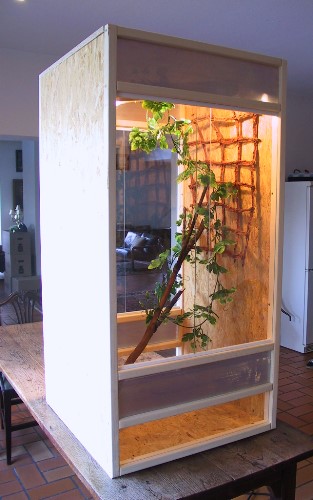 http://i221.photobucket.com/albums/d...s/HPIM0995.jpg Μες τη βδομαδα στο ρεπο μου θα παω να παρω πλεξι γκλας(αληθεια που πουλανε????) και υπολογιζω ενα τεραριουμ καπου 1,20Χ0,70Χ0,65.Για εξοπλισμο υγρασιομετρο,υγραντηρα,θερμαντικη πλακα και καποια λαμπα UV για ερπετα,μαλλον της σερα.Μεχρι τοτε τη βολευει πανω σε κανα φυτο!
