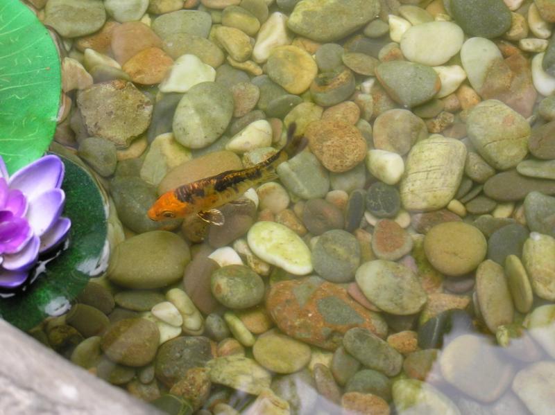 Στην λιμνούλα μου έχω 3 χρυσόψαρα και ένα koi.