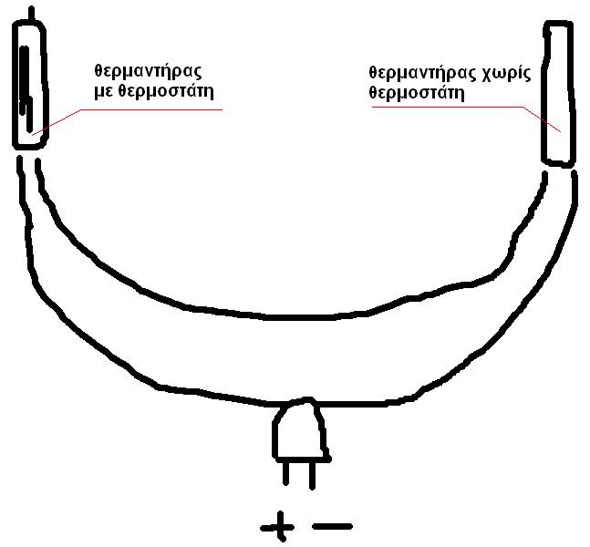 Αυτό που παρατήρησα όμως είναι ότι από 24 βαθμούς για να ανεβάσω στους 28 (έβγαλαν ικ οι ροδόστομοι...) ήθελε σχεδόν 2 μέρες συνεχούς λειτουργίας των θερμαντήρων. Οι θερμαντήρες είναι 300άριδες και τα λίτρα είναι 720. Ερώτηση, μήπως λόγω του ότι είναι κατά σειρά η αντίσταση του ενός μείωνει την ένταση έτσι ώστε ό 2ος να υπολειτουργεί? Η πατέντα δηλαδή είναι μούφα? ![]() Καλές ηλεκτρολογικές γνώσεις needed please. edit: και ένα σκαρίφημα για να καταλάβετε την σύνδεση. |