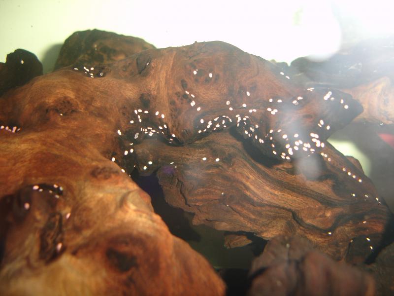 Σε ενυδρειο 180 λιτρων το οποιο δουλευει περιπου ενα χρονο με καμια 10ρια τιγρακια Εχουμαι βαλει μερικες ριζες και τις τελευταιες ημερες εχουν παρουσιαστει κατι ασπρα στιγματα. Εβγαλα τα ξυλα και τα επλυνα αλλα τιποτα Σας δειχνω και φωτο οποια βοηθεια κολοδεχουμενη ευχαριστο Κωστaς