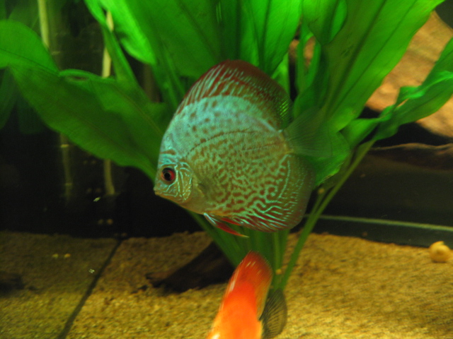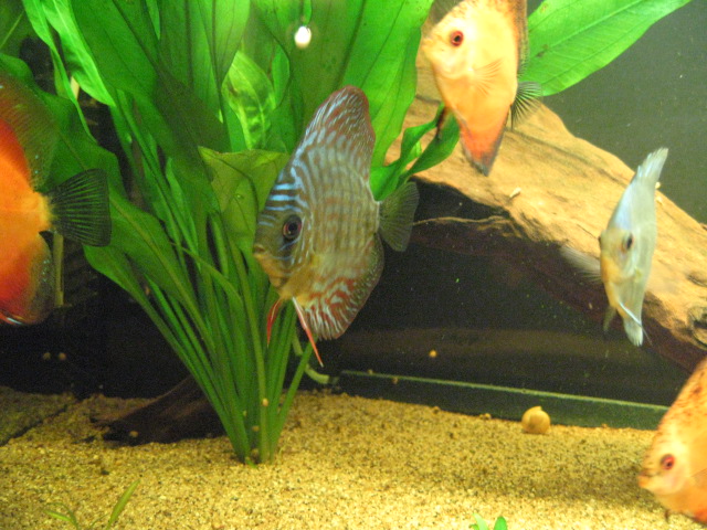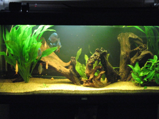 Πληροφορίες Διαστάσεις: 120χ50χ60 Όγκος: 290 καθαρα Κατηγορία: Δισκοι Φυτά: Echinodorus osiris,Anubias barteri var. angustifolia ,Vallisneria americana (gigantea) Ψάρια / Άλλα είδη: 7 δισκακια (4 Stedker) Διακοσμητικά υλικά: ριζες ,μη χαλαζιακη αμμος(ο,4-ο, (χαλίκι, ξύλα κ.λ.π.) Φόντο: μαυρο καρσον Φωτισμός: 2χ54watt(1 nature,1colour) Διάρκεια φωτισμού: 9 ωρες Φιλτράρισμα: 1χ2026, 2χ 2224 Θερμοστάτης: 250watt Λίπανση: Παροχή CO2: Παράμετροι: pH: 6,0 Γενική σκληρότητα (GH): <1 Ανθρακική σκληρότητα (ΚΗ):<1 Αμμωνία (ΝΗ3): 0 Νιτρώδη (ΝΟ2): 0 Νιτρικά (ΝΟ3): <10 Αλλαγές νερού: καθε 10ημερο Θερμοκρασία: 28οC Άλλες πληροφορίες: Φωτογραφία: