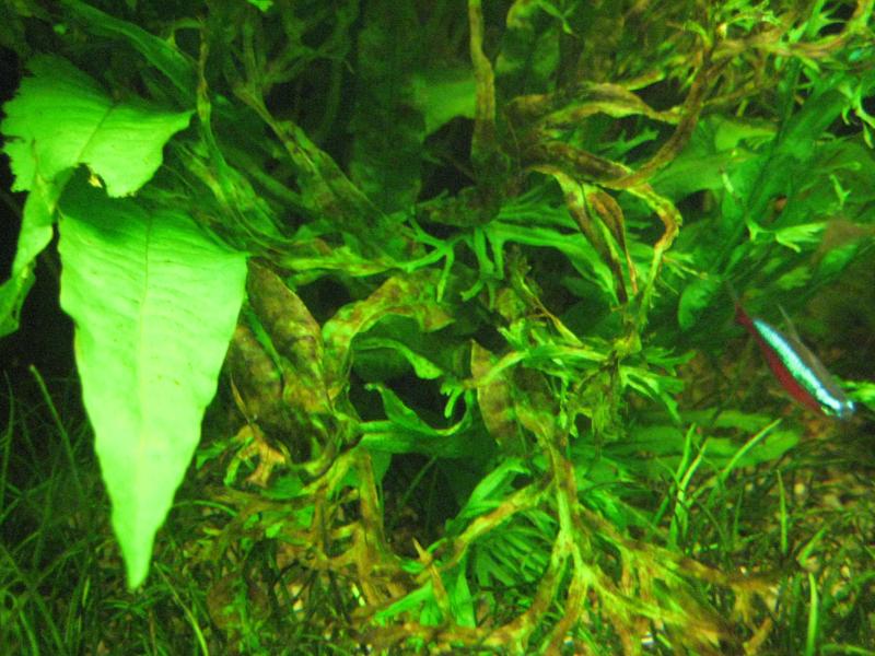 Όταν ρίχνω φωσφορικά , αρχίζω να βγάζω μακρύτριχη άλγη μέσα σε 5 ημέρες το πολύ . Το φυτό αυτό με ικανοποιήσε πάρα πολύ το πρώτο μήνα που το έβαλα γιατί σκέψου ότι μου έβγαλε πάρα πολλά νέα φυτάκια πάνω στα φύλλα του ! και πάνω που χάρηκα , άρχισε να χαλάει . Το μάτιασα και έσκασε!!!