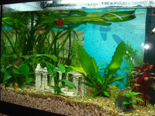 Αν και δεν συμφωνώ με αυτού του είδους διακοσμητικά (παρθενωνες, ναυαγια, δυτες κτλ) το ενυδρείο σου μου άρεσε! Αν εχεις όρεξη για πειραματισμούς δοκίμασε να αντικαταστήσεις τα διακοσμητικα με μερικά ξυλα ή πέτρες. Πολυ καλη προσπαθεια πάντος! Καλη συνέχεια! |