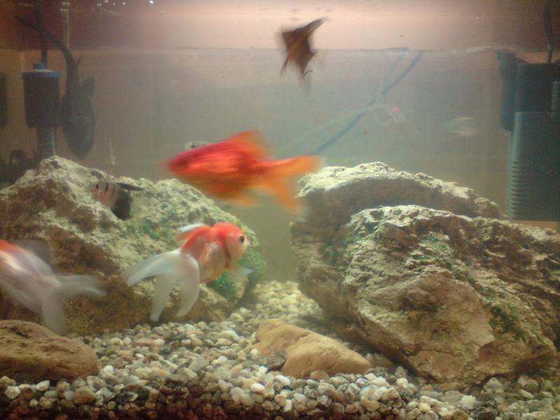 Διαστάσεις:50x35x30 Ψάρια:3 oranda,2 χηρες,1 small angel fish Διακοσμητικά υλικά:2 μεγαλες φυσικες πετρες,πετραδακια (χαλίκι, ξύλα κ.λ.π.) Φόντο:---- Διάρκεια φωτισμού:9 ωρες θερμοκρασια 26 το ξερω οτι ο αριθμος των ψαριων ειναι μεγαλος,,αλλα ολα ειναι δωρα απο αλλους και δεν μπορω να τα επιστρεψω..... λοιπον,,comment...