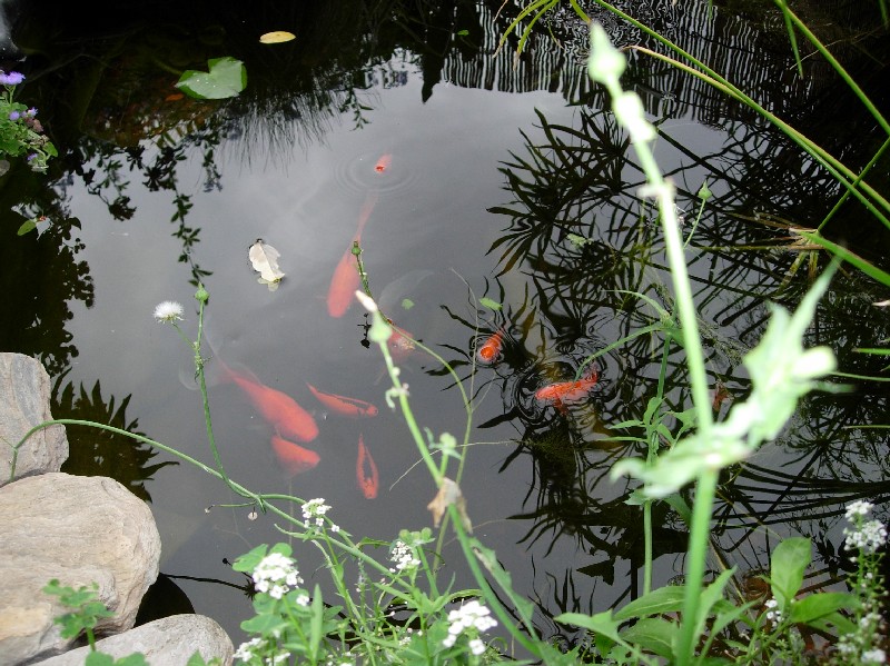 Έχω μια μικρή λίμνη 1000-1200 λίτρα η οποία βρίσκεται σε κοντινή στη θαλάσσα περιοχή της Αττικής. Το μέγιστο βάθος είναι περί τα 70 – 80 εκατοστά. Μέσα υπάρχουν 3 ενήλικα χρυσόψαρα και 5 μικρά που γεννήθηκαν το καλοκαίρι (η λίμνη τρέχει από την ¶νοιξη).