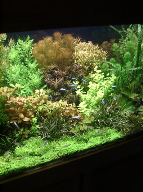 Όσοι έχουν πολύ φως και Co2 αξίζει να το προσπαθήσουν , είναι όντως πανέμορφο φυτό. Και μια φωτογραφία με την παρέα της την 3η χρονιά στο ενυδρείο : |