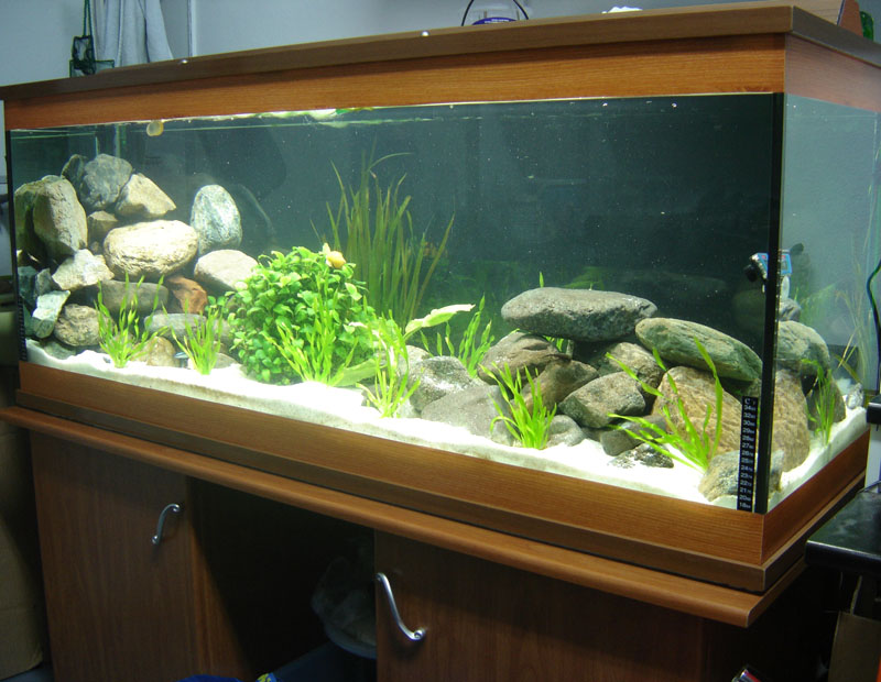 Η νέα κατάσταση του νέου ενυδρείου malawi 450 λίτρων, μου λείπει το πίσω μαύρο background και μερικά φυτά vallisneries και φυσικά τα ψαράκια.
