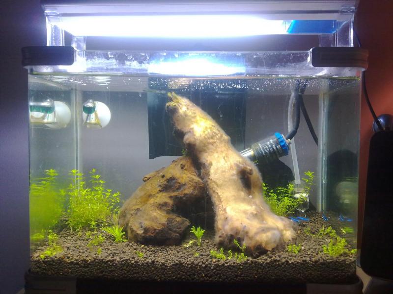 Λοιπόν! το ενυδρειάκι στρώθηκε η τιμές βέβαια παραμένουν χαμηλές (ph-5.5, kh-2, gh-2, no2-0, no3-0, nh3/nh4-0, po4-0.1) αλλά μέχρι στιγμής δεν μου έχουν δημιουργήσει κάποιο πρόβλημα. Η cuba μου όμως μου δίνει την εντύπωση οτι αργοπεθαίνει, τα φυλλαράκια της αρχίζουν να παίρνουν ένα διάφανο χρώμα και να εξαφανίζονται σιγά σιγά.