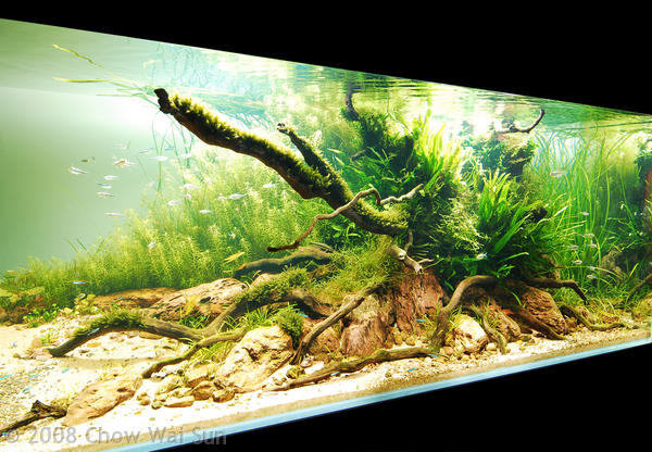Το diy κανει την δουλεια του...ορεξη να εχεις να το φτιαχνεις καθε φορα. Εφοσον ειναι δυο οψεων προτεινω να φορτωσεις την μια πλευρα με φυτα,την πλευρα που ειναι ο εξοπλισμος (φιλτρο,θερμοστατης,διαχυση co2) και το φυτεμα οσο πλησιαζεις την απεναντι πλευρα να σβηνει σε υψος και αλλα και σε πλατος και να αφησεις 20 ποντους ελευθερους σκετη αμμο στην απεναντι απο την πλευρα που εχεις φορτοσει.. Οποτε κανεις ενα τειχος με βαλισνεριεςκαι κρυβεις τον εξοπλισμο και σιγα σιγα μπροστα απο αυτες βαζεις ολο και πιο χαμηλα φυτα ωσπου να σβηνεις σε υψος αλλα και σε πλατος στα 3/4 του ενυδρειου. Τωρα απο φυτα μπορεις με αυτο τον φωτισμο και co2 σε συνδυασμο με λιπανση να βαλεις πολλα φυτα,πες τι σου αρεσει να δουμε αν κανει. Ενα παραδειγμα τι θελω να σου πω ειναι η φωτο που παραθετω...