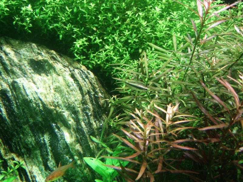 Και ξαφνικά καμμιά 10αριά πιτσιρίκια έσκασαν μύτη και κόβουν βολτες μέσα στο ενυδρείο,είναι απο 3-4 διαφορετικές γέννες και έχουν μέγεθος απο 2 εκ. και κάτω ,βέβαια μέσα στα φυτά έχει ακόμη πολές ψειρούλες ,στις φώτο ενα απο τα μεγαλούτσικά: