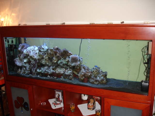 Η αμμο είναι μαυρος αραγονιτης και θα κοιταξω να μαθω ποιας εταιριας είναι γιατι τωρα δεν θυμαμαι .Oι φυσαλιδες (δηλαδη τα οξυγονα)κανουν κακο?Aμα είναι να τα σταματησω αμεσα.Tα κεραμυδακια που βλεπετε στα κενα του βραχου είναι μια ποσοτητα από λαβοπετρες που ειχα από το γλυκο και τις χρησιμοποιησα σαν βαση για να ακουμπησει ο ζωντανος βραχος.και που ξερεις μπορει στο μελλον να ζωντανεψουν(λεω εγω τωρα).